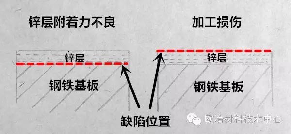 鋅層附著力不良的本質(zhì)是鍍鋅層和鋼鐵基板的結(jié)合力不佳,反映出來的就是加工變形后鋅層與基板剝離。